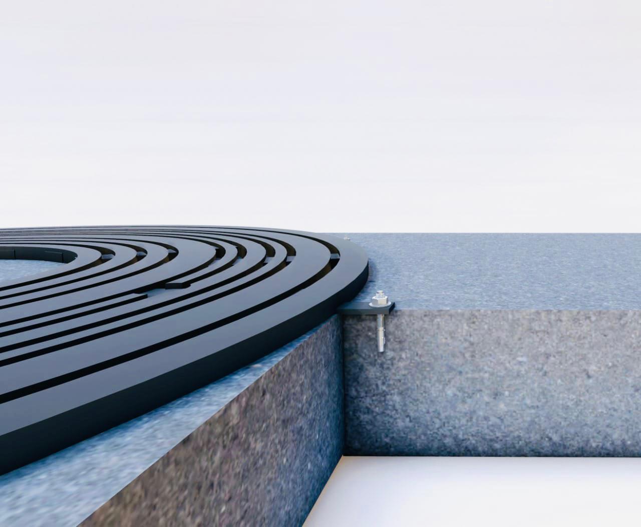 A tree grate is a metallic grating installed at the same level with the pavement around a tree that allows the soil underneath to stay uncompacted and the pedestrians to walk near the tree without stepping on the soil.